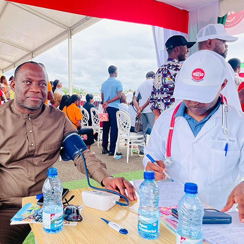 Durante su estancia en Luba, Moisés Angüe visitó el puesto provisional de primeros auxilios instalado en la plaza, donde se reunió con los especialistas de turno para agradecer su servicio a la comunidad en este momento difícil e instruirlos sobre la relevancia de su labor y la importancia de brindar todo el apoyo necesario a la ciudad.